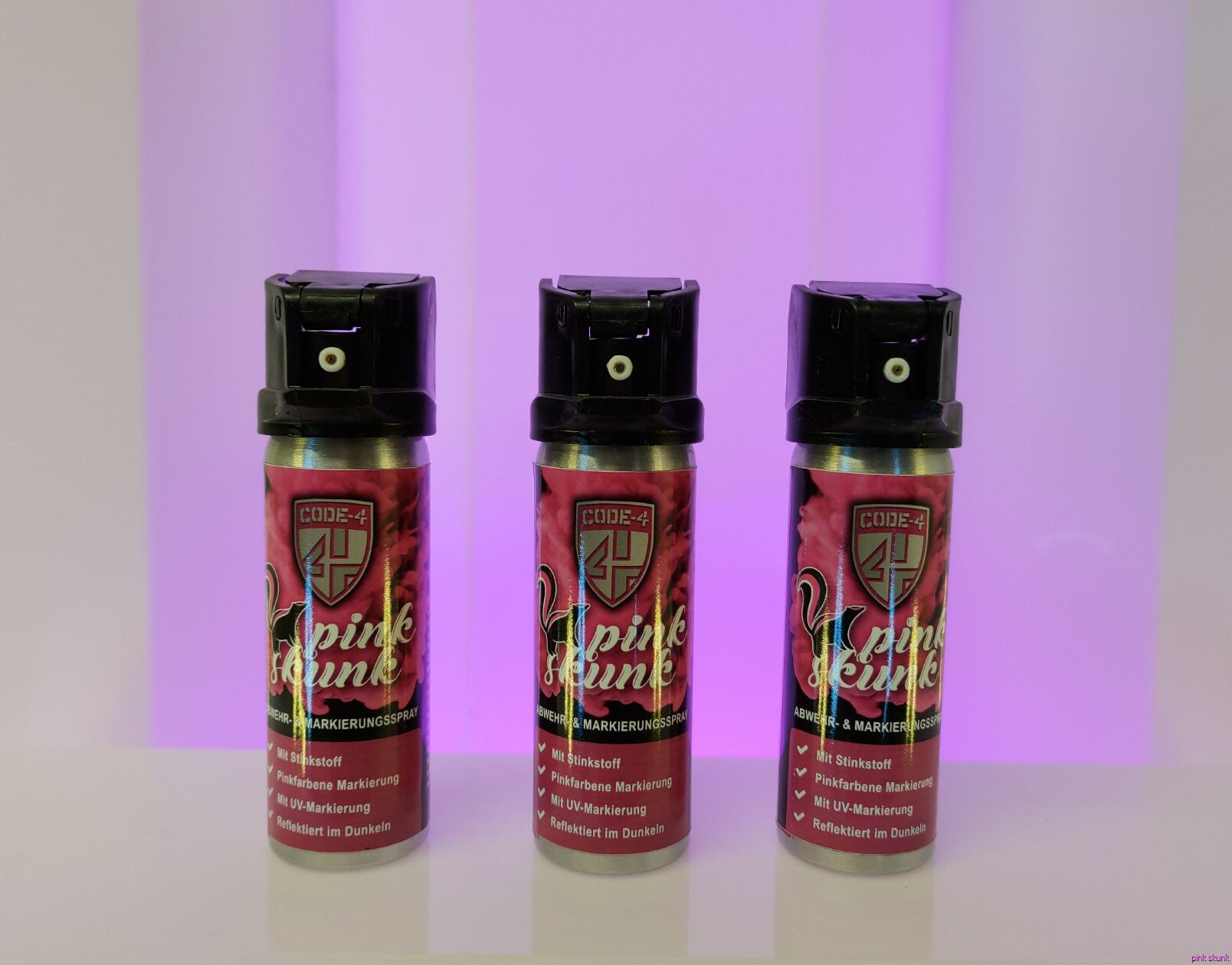 Sie sind hier: Startseite » pink skunk kaufen pink skunk Dreierpack Perfekt als Geschenk und für den Selbstschutz 3x 50 ml pink skunkSicherheitshinweise:Nur bei Gefahr anwenden.NICHT in die Augen sprühen.Dose nicht liegend lagern.Dose nicht im Auto liegen lassen. Aktion war erfolgreich Das hat leider nicht geklappt. Warenkorb anzeigen Zur Kasse gehen Weiter einkaufen Produkt-ID: C4SPS0050-3 Lieferbar in 3-5 Werktagen 69,80 EUR incl. 19% USt. zzgl. Versand Gewicht: 0.3 kg Anzahl: St In den Warenkorb Auf den Merkzettel